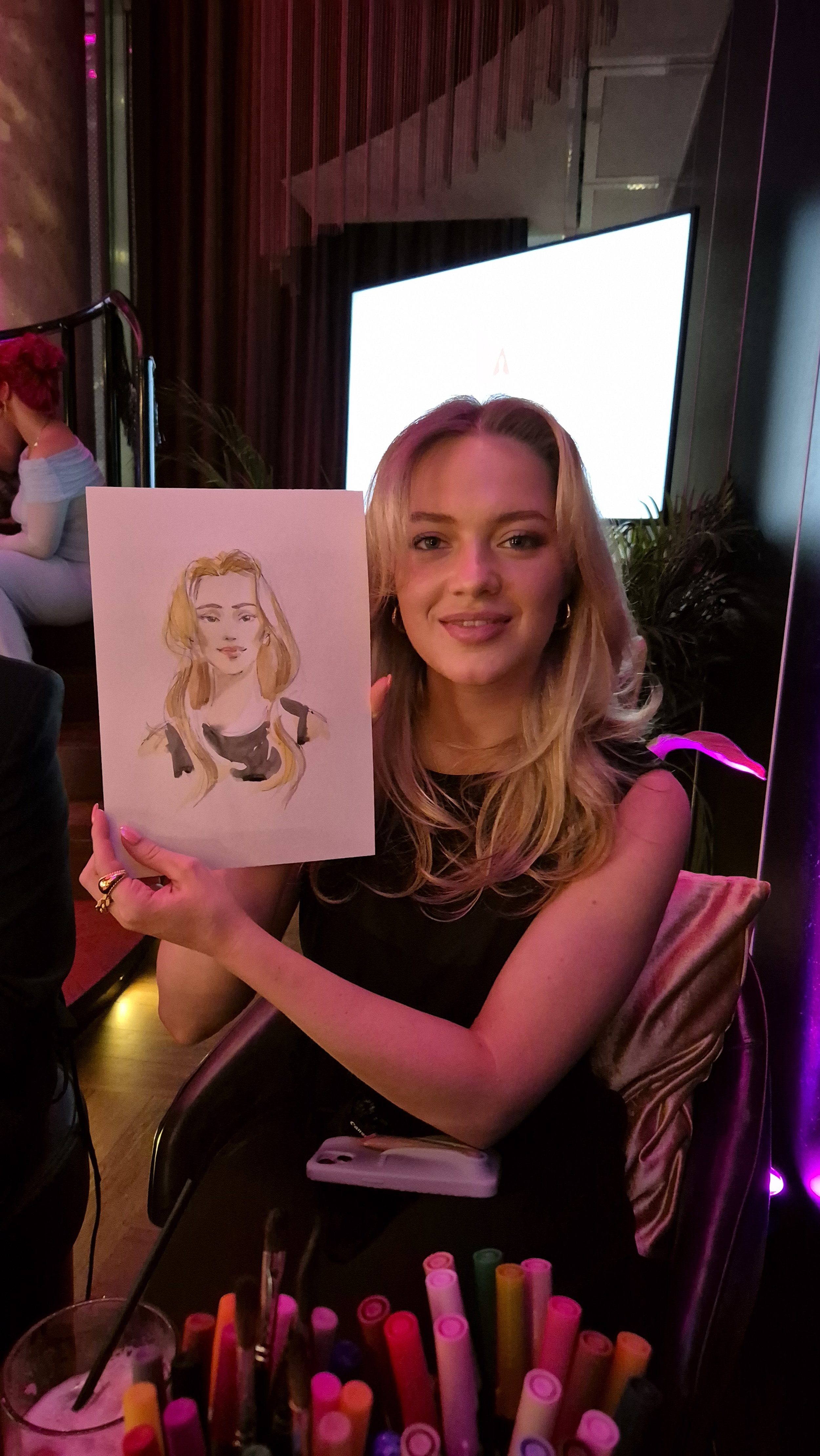 A lively presence. More than just a portrait artist, I’m also a people person. I love connecting with guests, sharing a laugh, and making the experience interactive and memorable.
